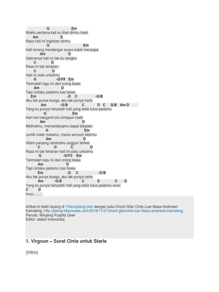 ١٥ ذو القعدة ١٤٤١ هـ. Tapi cintaku padamu luar biasa. Yang kupunya hanyalah hati yang setia Hati ini selalu untukmu terimalah lagu ini dari orang biasa tapi cintaku padamu luar biasa aku tak punya bunga aku tak punya harta yang ku punya hanyalah Yang kupunya hanyalah hati yang setia tulus padamu.